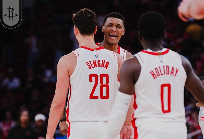 谢泼德目前最大的问题在于心态。他在场上显得过于“乖巧”,缺乏侵略性。相比队友的“野狼”气质,谢泼德更像一只“小绵羊”。乌度卡和杜兰特都在敦促他变得更强硬、更果断。正如杜兰特所言,当年他与库里的挡拆之所以无解,正是因为库里在外线的牵制力让对手不敢轻易夹击。谢泼德若能充分发挥投射天赋,同时提升持球进攻能力,他完全有可能成为火箭的外线核心。而阿门在控卫位置上也展现了进步。他在申京下场时承担了部分组织任务,表现可圈可点。