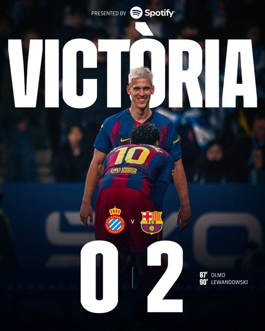 北京时间1月4日04:00,西甲联赛第18轮,西班牙人坐镇RCDE体育场迎战巴萨。上半场霍安·加西亚神扑,两队暂0-0战平;下半场霍安·加西亚再献神扑,费尔明分别助攻奥尔莫和莱万破门,最终巴萨2-0西班牙人,各项赛事八连胜,先赛情况下7分领跑。